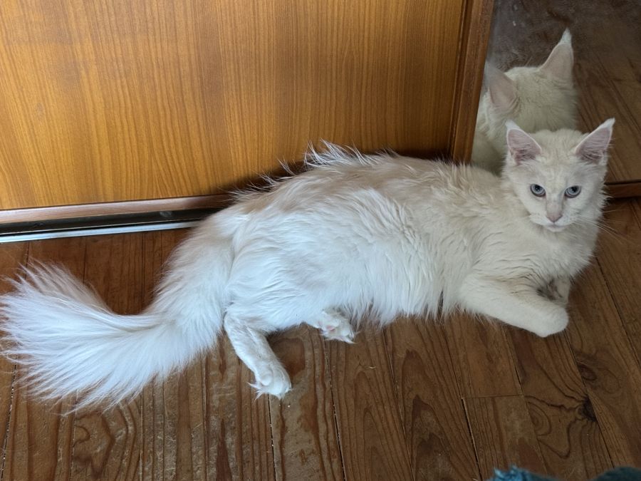 Chatterie du ranch d’Acadia vous propose à l’adoption 1 baby’s coon sur une portée de 4 nés le 24 janvier 2026