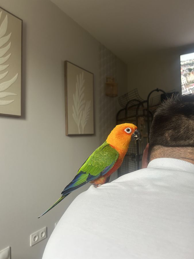 Conure jandara à vendre car nous avons trop peu de temps à lui consacrer , il est adorable , fait des bisous à la demande, il est très sociable et demande que de l’amitié