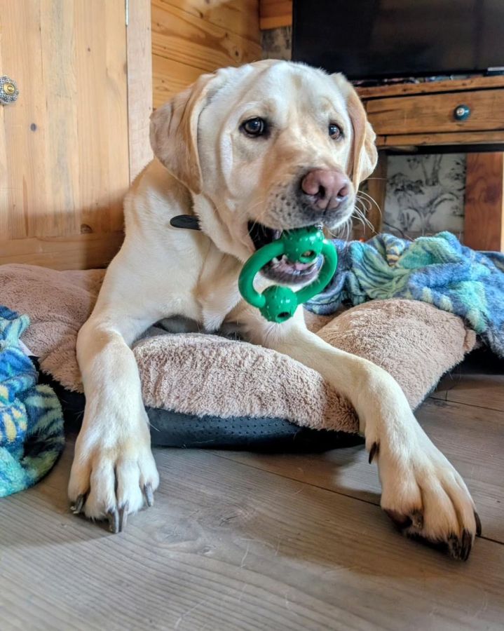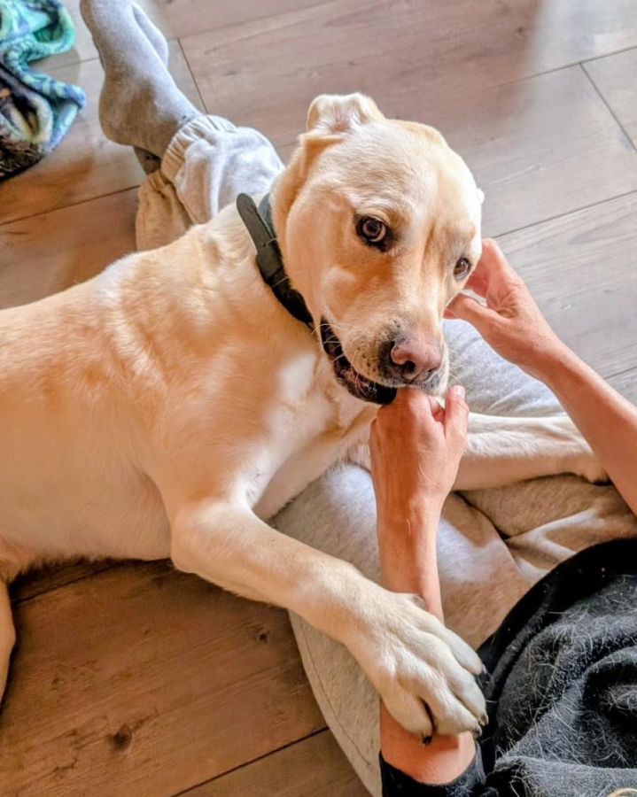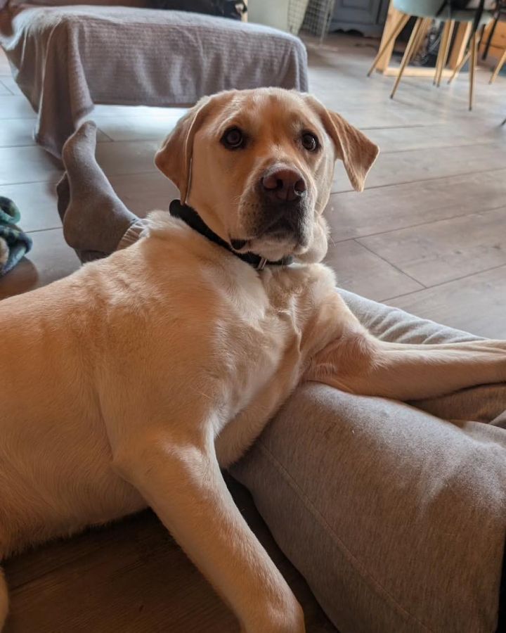 Bermude est un 𝑳𝒂𝒃𝒓𝒂𝒅𝒐𝒓 𝒅𝒆 𝟓 𝒂𝒏𝒔, aussi beau que sympa. Il est câlin, joueur, propre, non destructeur, une vrai perle ! Il ne connait pas les chats mais a déjà vécu avec poules et cochons d’indes !