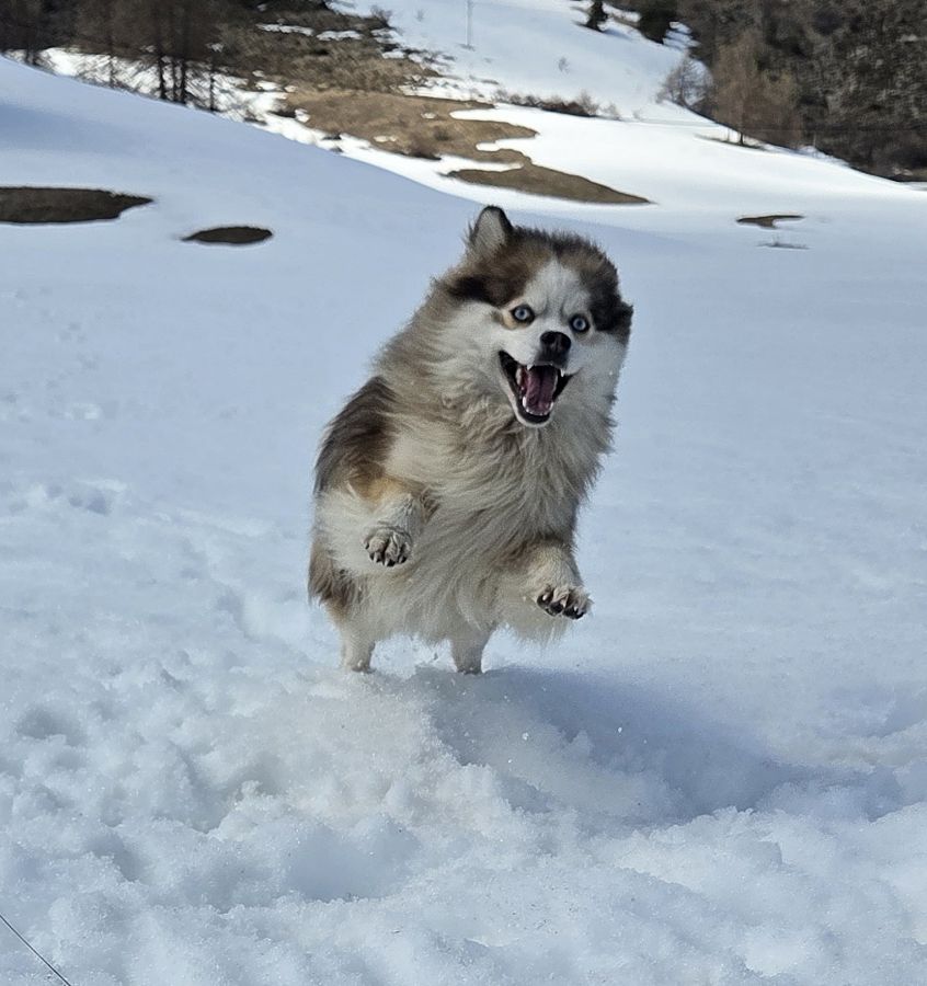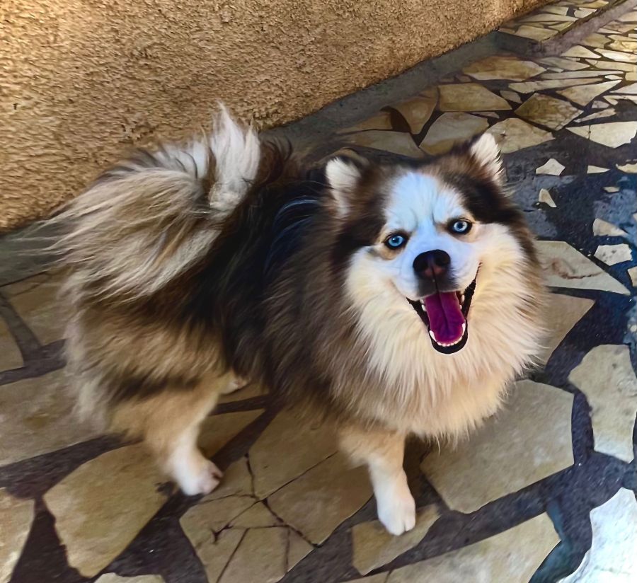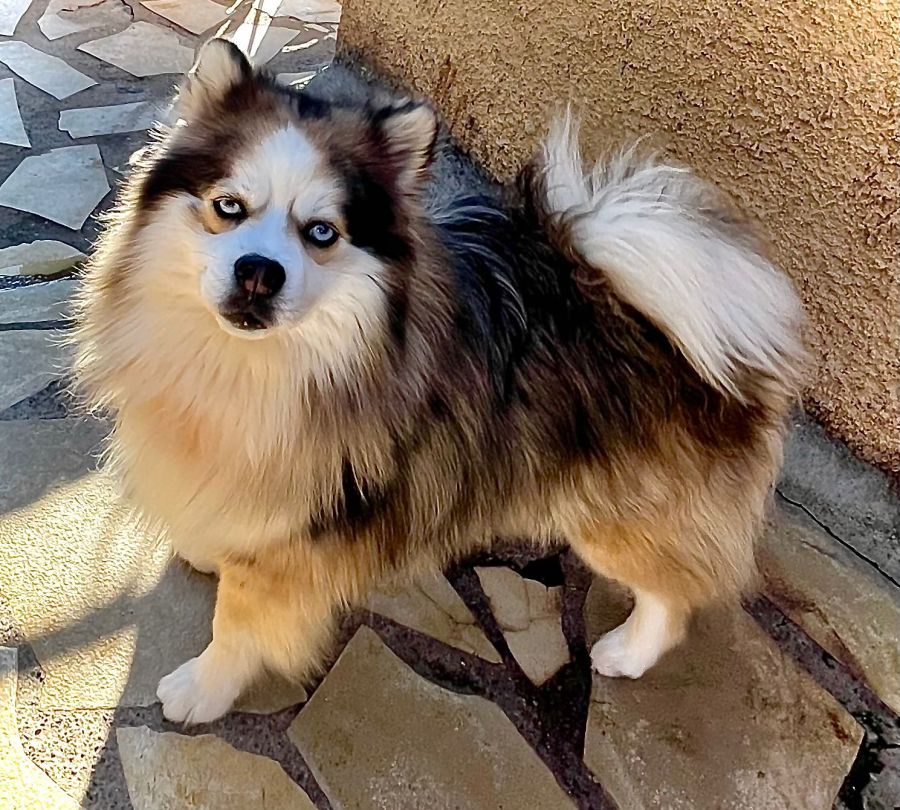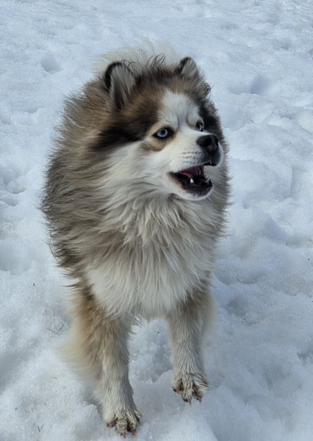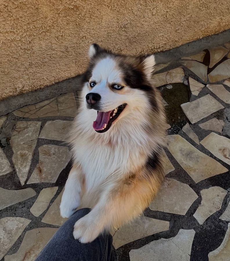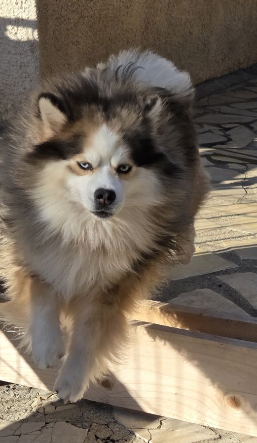 L'élevage Sweet Dog vous propose un magnifique mâle Pomsky F3 merle rouge, poile wooly au yeux bleus de presque 2 ans et pesant 10kg.