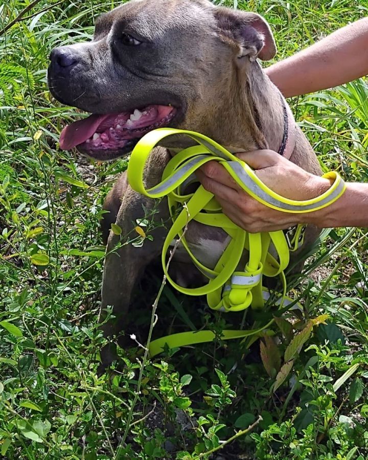 Elle aime les promenades et marche bien en laisse, sans tirer. C’est une chienne puissante, liée à son gabarit, qui aura besoin d’un adoptant capable de la canaliser en douceur.