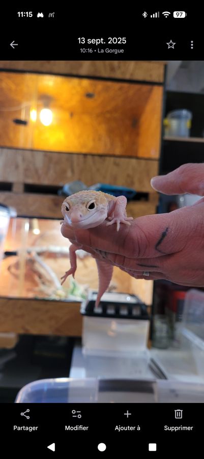 Bonjour Né en juin 2025 (8 mois) Male Possibilité de voir les gecko...