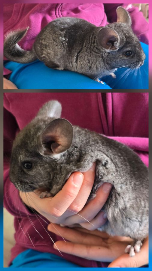 À adopter, jeune femelle chinchilla grise foncée née le 1er février 2026.