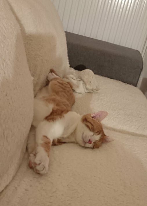 Il est maintenant totalement à l'aise et profite des soirées canapé blotti contre son humaine. Clovis est très joueur, il a besoin de se dépenser. Il n'est pas un chaton "peluche", mais un chaton vif et plein d'énergie. Il s'entend très bien avec ses congénères.