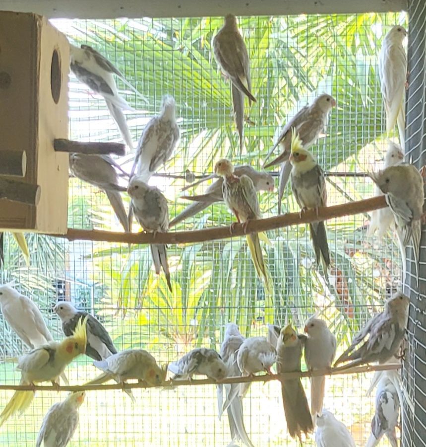 4 calopsittes de l’année 2025. 2 bébés gris 2 bébé gris et jaune 30...