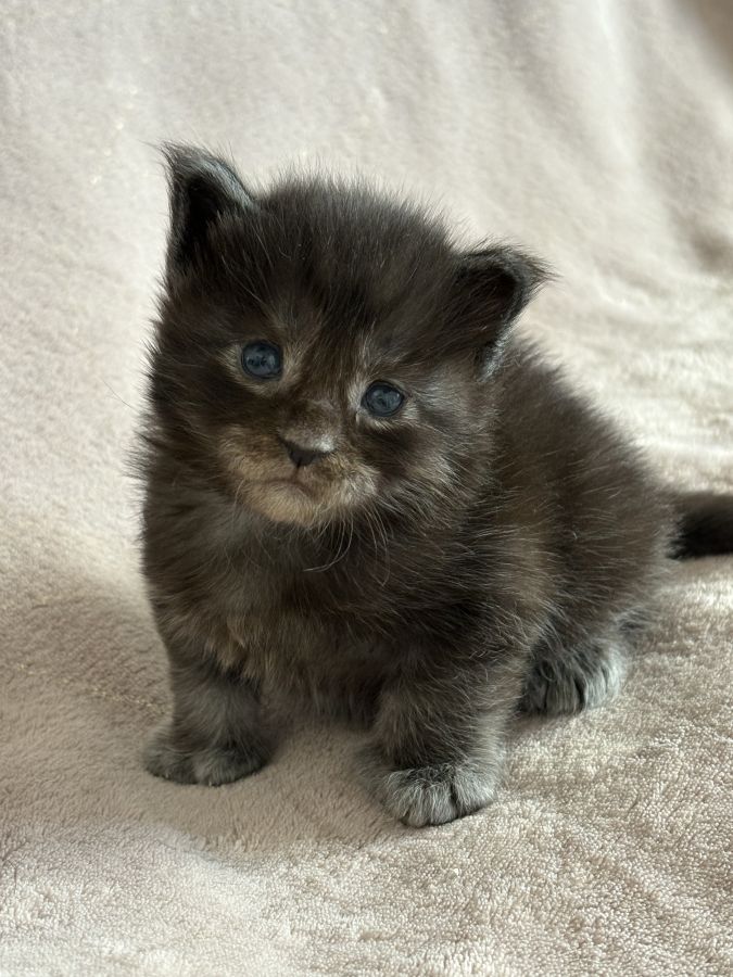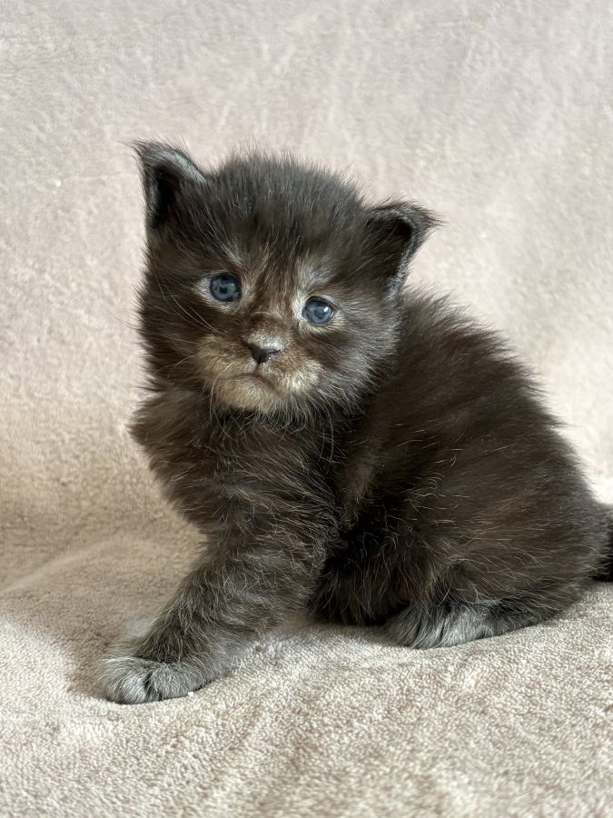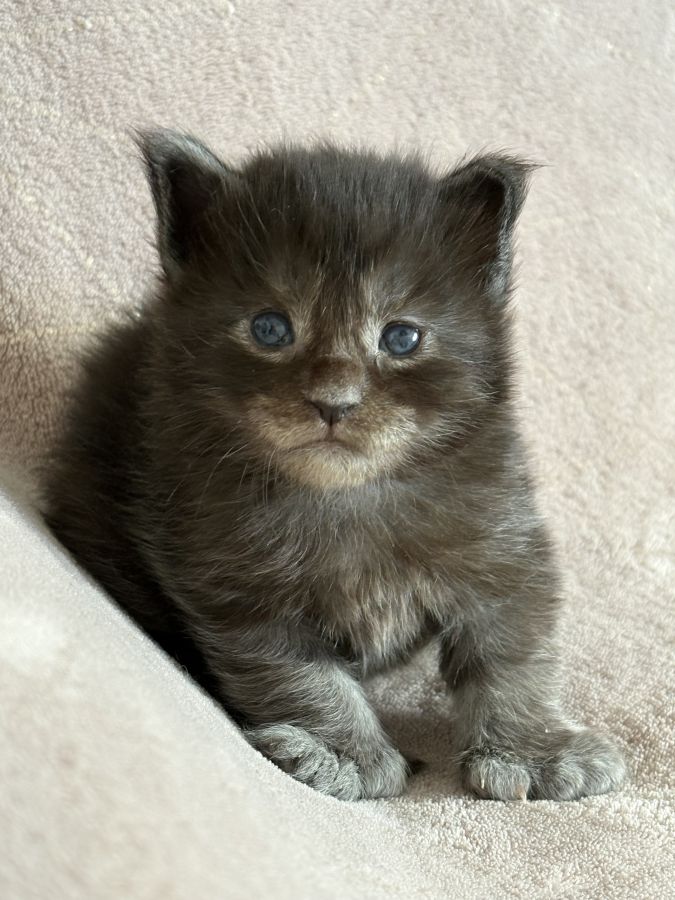 Disponible à la réservation chaton maine coon femelle née le 14/03/2026 inscrite au Loof d’une portée de 7 chatons.