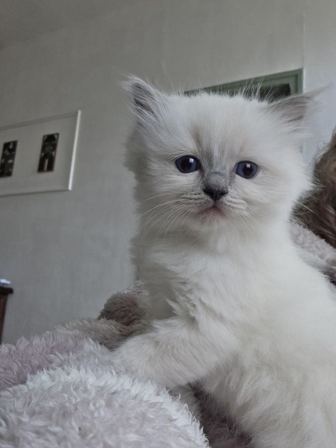 Un adorable chatons mâle Blue Point est encore disponible à la réservation. Il est issu de parents inscrits au LOOF, papa et maman ont un excellent caractère et une excellente lignée comportant plusieurs champions des 2 côtés. Il est habitué aux enfants et aux bruits du quotidien.