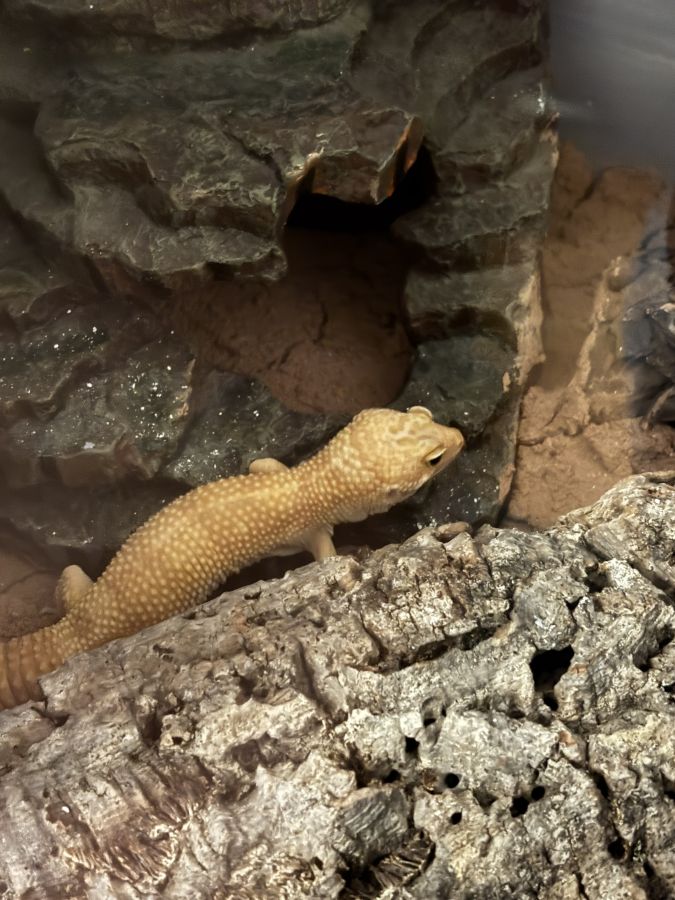 Bonjour Vend gecko leoapard mâle blizzard , éclipse. ( car yeux noir) Il a un petit défaut de mâchoire mais ne l...