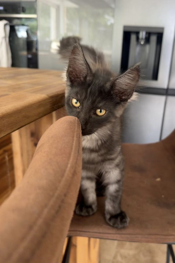 Nés le 13/01/2026, il grandit dans un environnement familial, habitué aux enfants et aux bruits du quotidien, ce qui en un fait un chaton parfaitement sociabilisé.