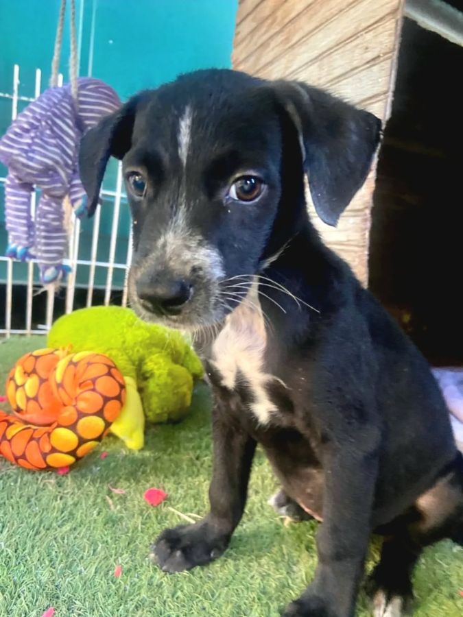 Sushi est un chiot très affectueux, proche de l’humain et en grande demande de câlins.