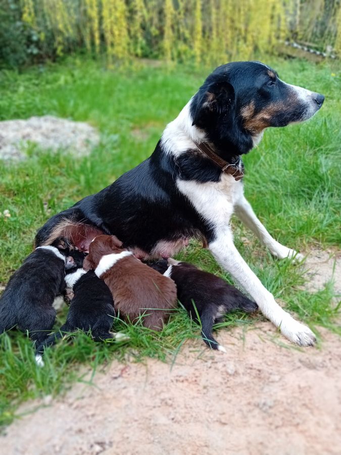 Magnifique portée composée de mâles (5) et femelles (4) noir et blanc tricolores ou chocolat tricolores