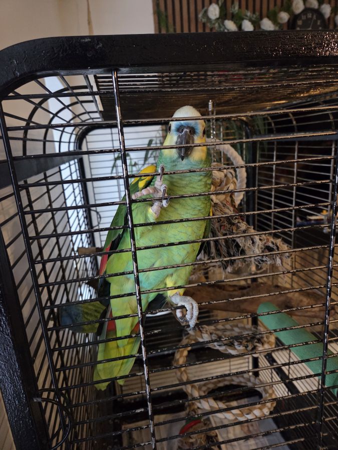 Bonjour,j.aimerai vendre mon perroquet amazone a front bleue,il est baguès et sexé.