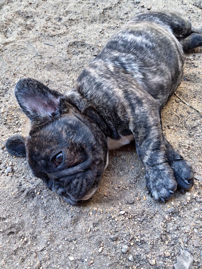 Bidule, bouledogue français mâle de 3 mois cherche sa nouvelle famille pour une vie remplie de caresses et d'amour.