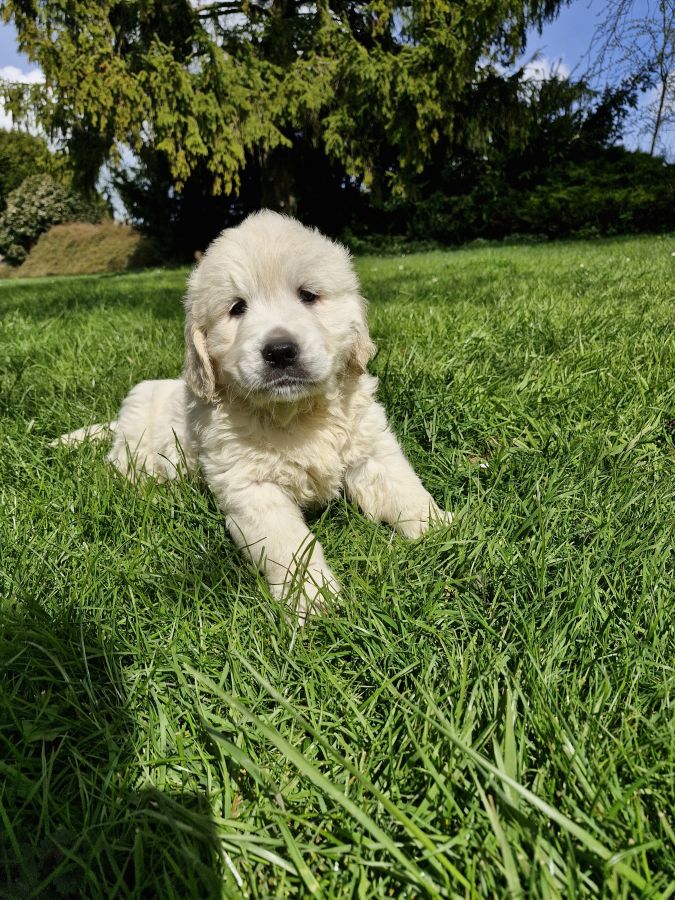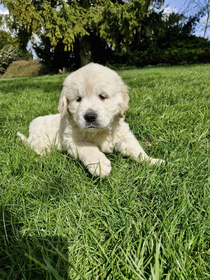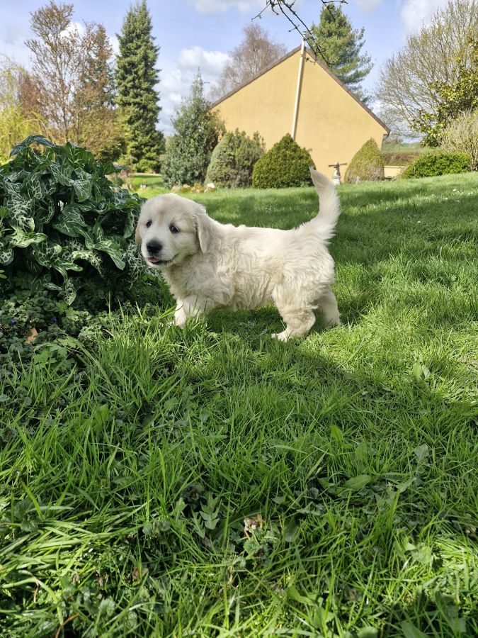 L'élevage familial "Un ami pour la vie" vous présente notre mâle bayron golden retriever, inscrit au LOF. Il est le dernier de la portée à chercher sa famille et est né le 12 février.