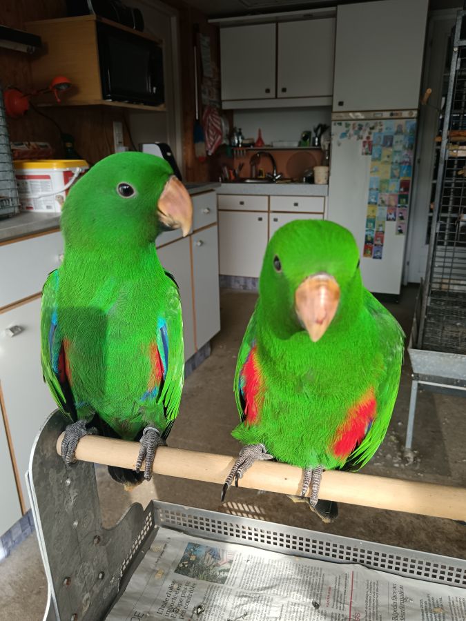 Jeunes eclectus roratus roratus élevés a la main totalments sevrés né en décembre 25 gentils et calmes