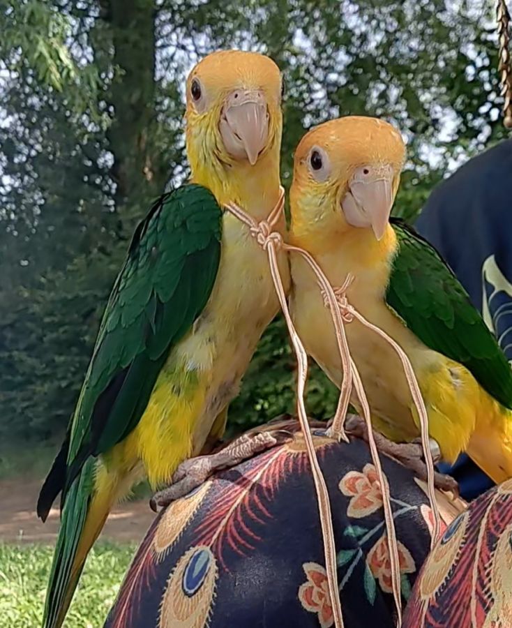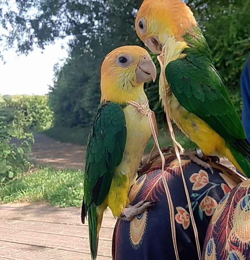 Aire de jeu : Très actifs, ils ont besoin d’un espace extérieur sécurisé pour voler et explorer.