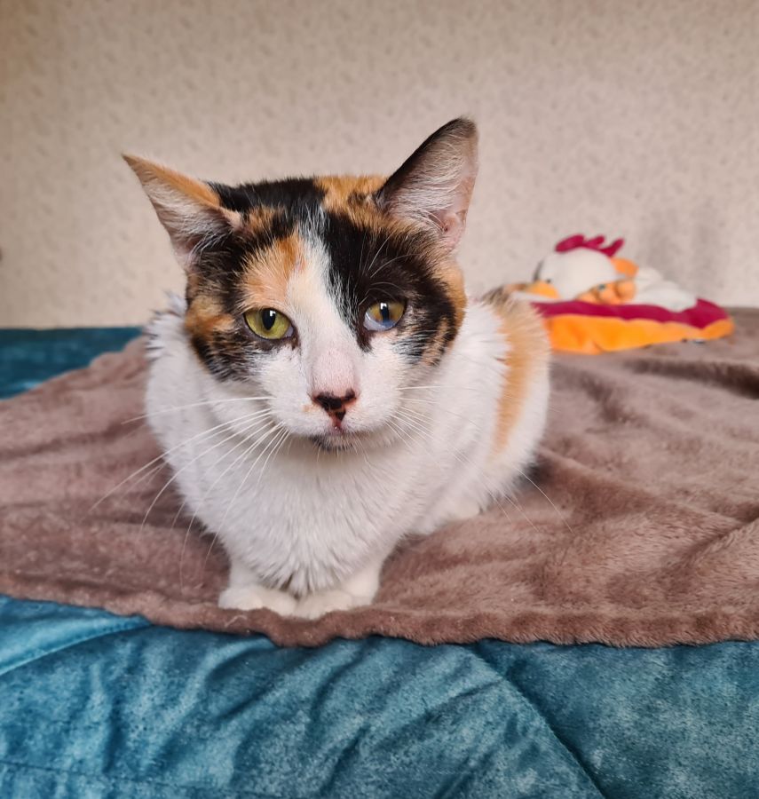 Kadouce est stérilisée, vaccinée, vermifugée, déparasitée, identifiée et testée négative Fiv / Felv.