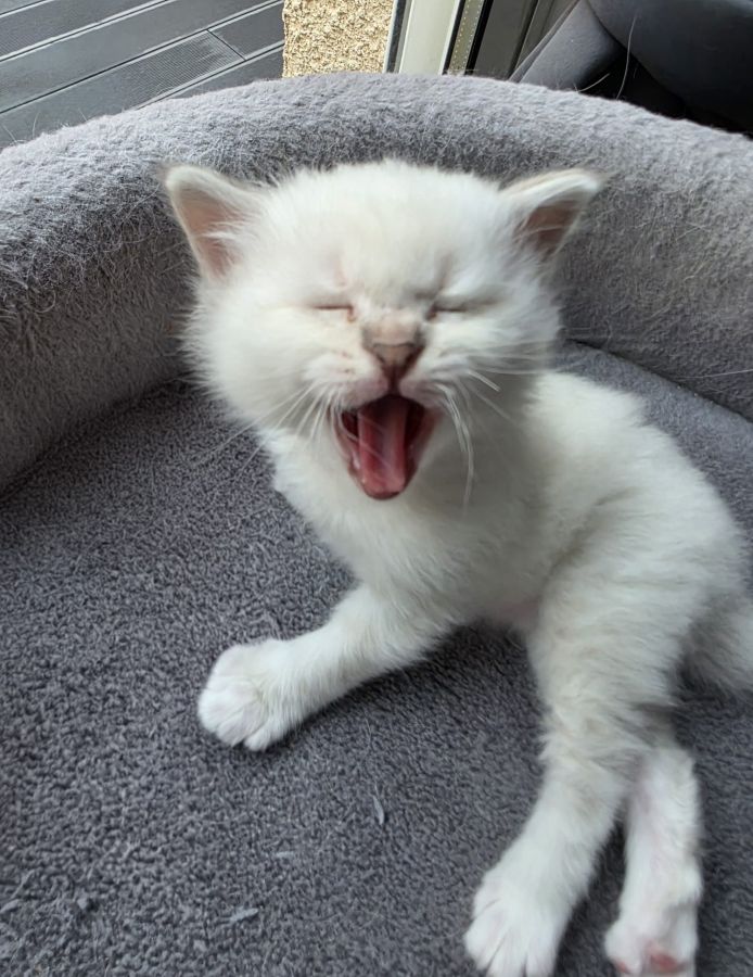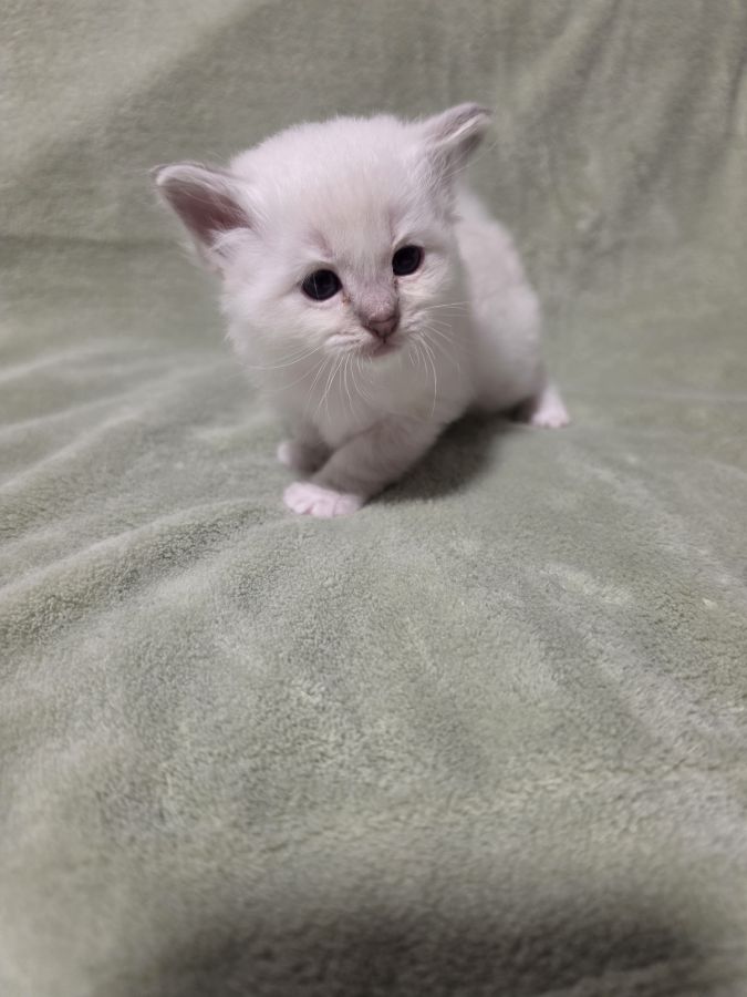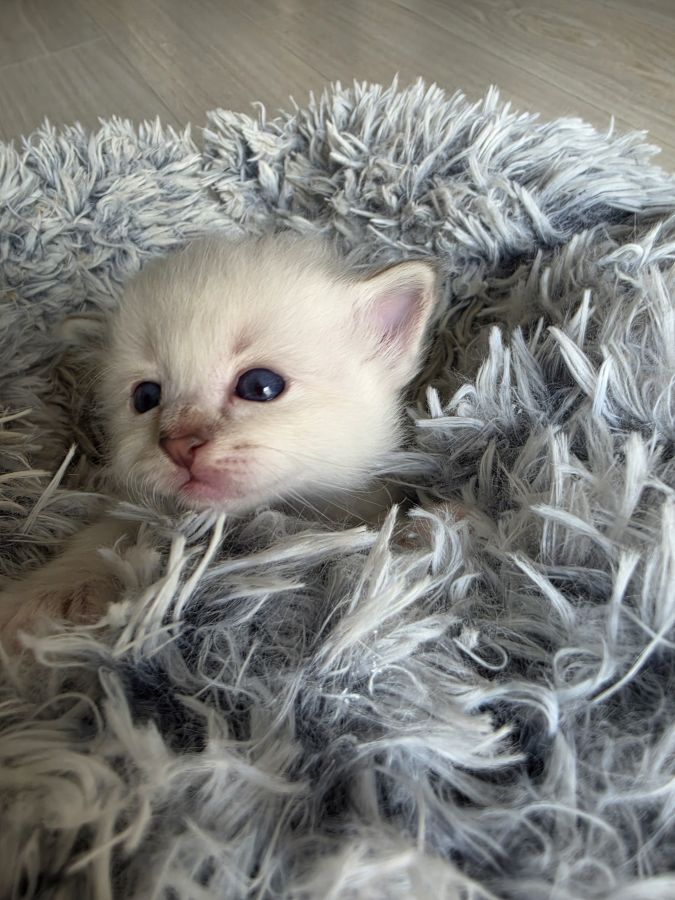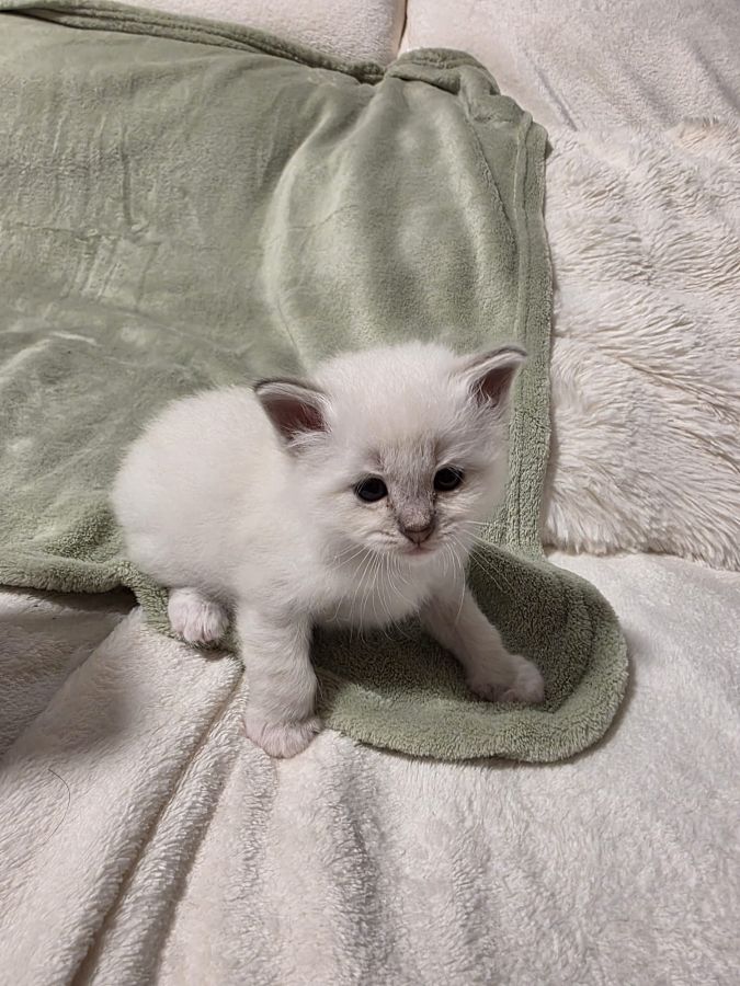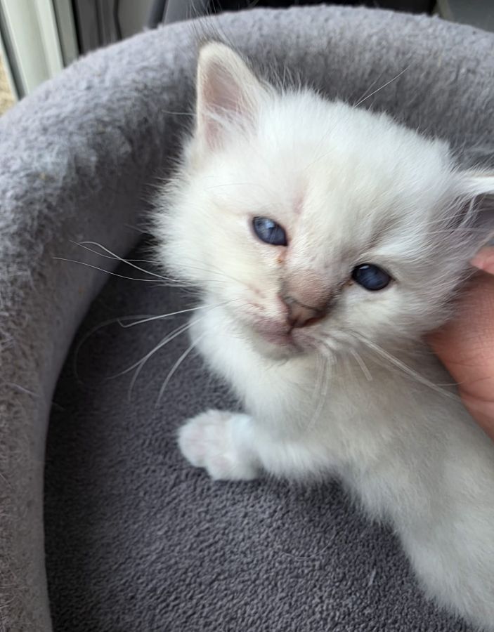 Ce chaton se distingue déjà par sa douceur, sa présence apaisante et son tempérament très affectueux(le loulou réclame déjà des câlins) caractéristiques emblématiques du Sacré de Birmanie. Il saura sans aucun doute créer un lien fort et sincère avec sa future famille.