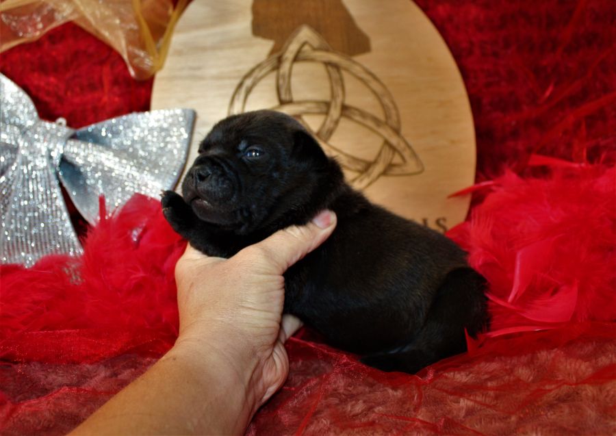 Elle a un très bon pedigree lignée de champions elle est très affectueuse et aime sa famille elle adore les enfants. Elle est clear des tests de santé L2HGA , HC, Dilution (non porteuse), Locus effectué, affiliation ADN fait egalement