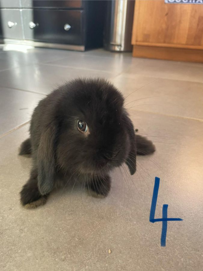 Bonjour , nous vendons 4 petits bébés lapins nains béliers pur race , ils ont tous là couleur de pelage noir, ils sont mignons , gentils , aiment les caresses et sont proches de l'homme. Les lapins seront disponibles début mai , 35€ le lapin , plus d'informations par lapins en privé