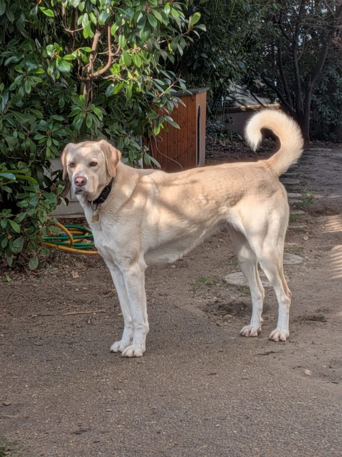 Femelle de cinq ans, stérilisée. Vaccinations à jour, pucée. C'est une chienne de garde loyale et territoriale. De grande race, elle n'est pas adaptée aux personnes qui adoptent un chien pour la première fois. Un grand jardin est indispensable. Elle est sociable et amicale avec les autres chiens.