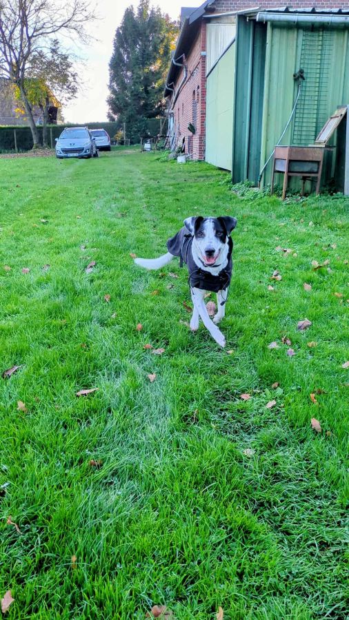 Malgré mon handicap, je suis un vrai rayon de soleil ! Je déborde de joie, j'adore la vie plus que tout. Je comprends tout et très vite. Chaque jour, je pars fièrement en balade jusqu'à 1h/1h30 maximum, la queue en fête et le cœur rempli de bonheur.