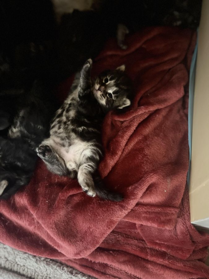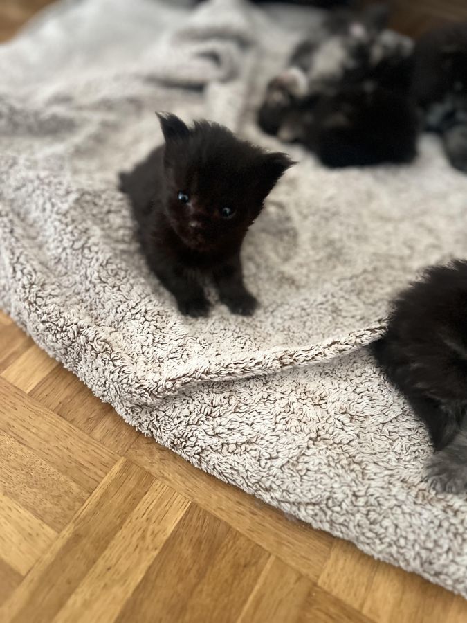 Les chatons vivent en liberté dans la maison avec des enfants et des chiens.
