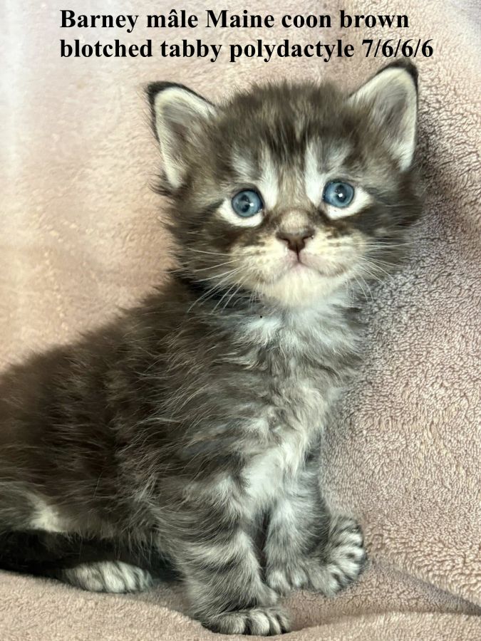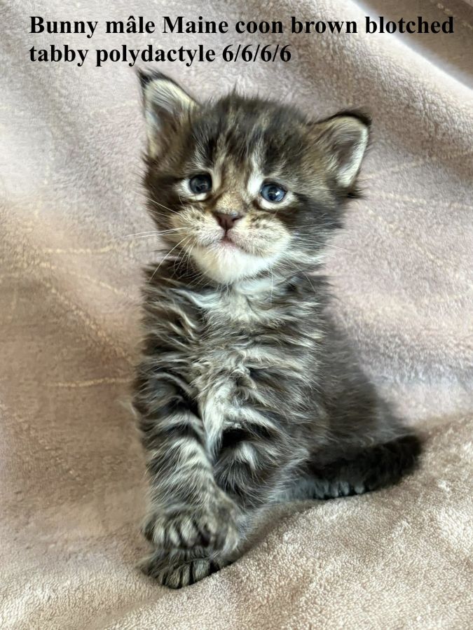 À réserver 4 chatons maine coon mâles dont certains polydactyles nés le 24/03/2026 d’une portée de 4 chatons.