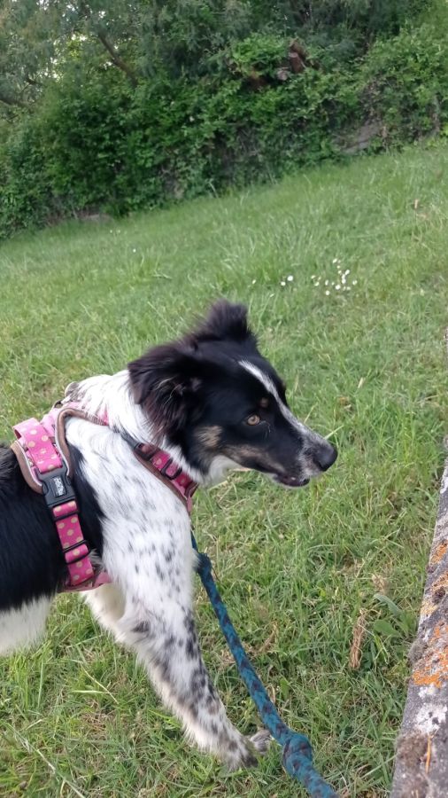 J'habite a Gradignan (33) et je cherche une nouvelle famille (don) pour une jolie chienne croisée border collie/berger des Pyrénées née le 22/10/2025, pucėe, vaccinée,vaccin antirabique également fait