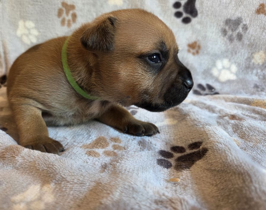 Nous avons le plaisir de vous présenter nos adorables chiots Staffordshire Bull Terrier LOF nés le lundi de Pâques, le 06 avril 2026.