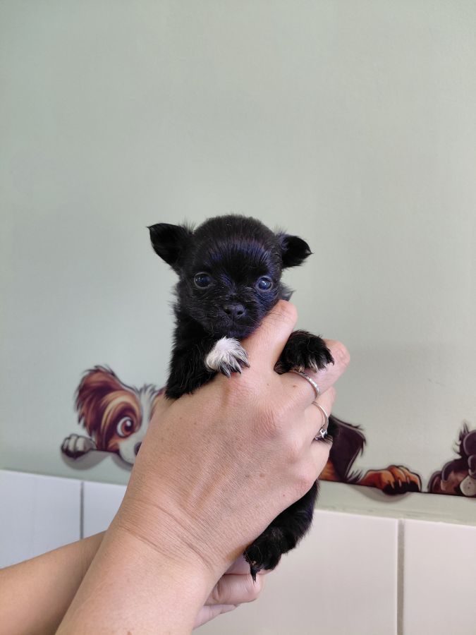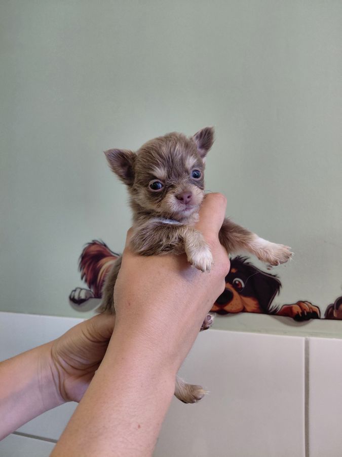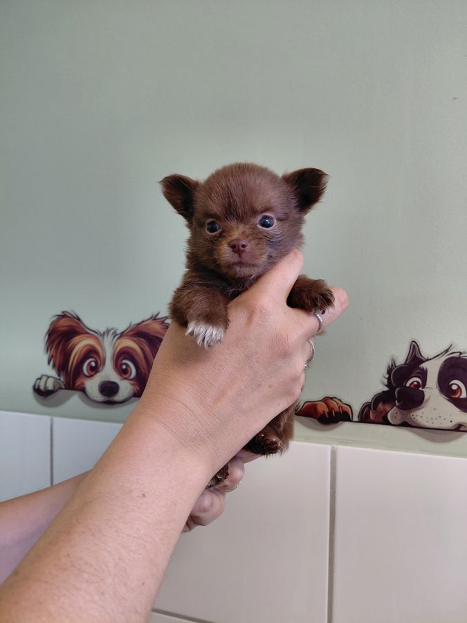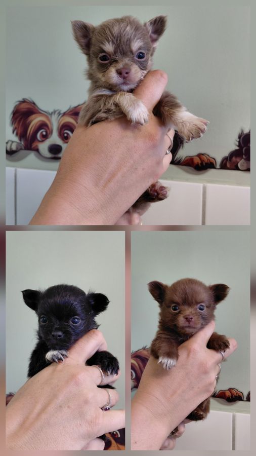 Bonjour, je vous présente 3 petits chiots mâles chihuahua à poils longs.