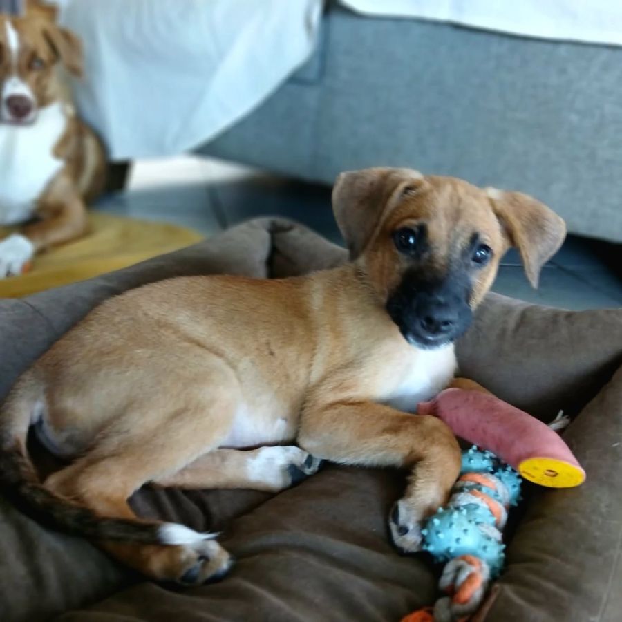 Lucius est un chiot joueur, curieux et très proche de l’humain. Affectueux, il aime les câlins et la présence de ses humains.