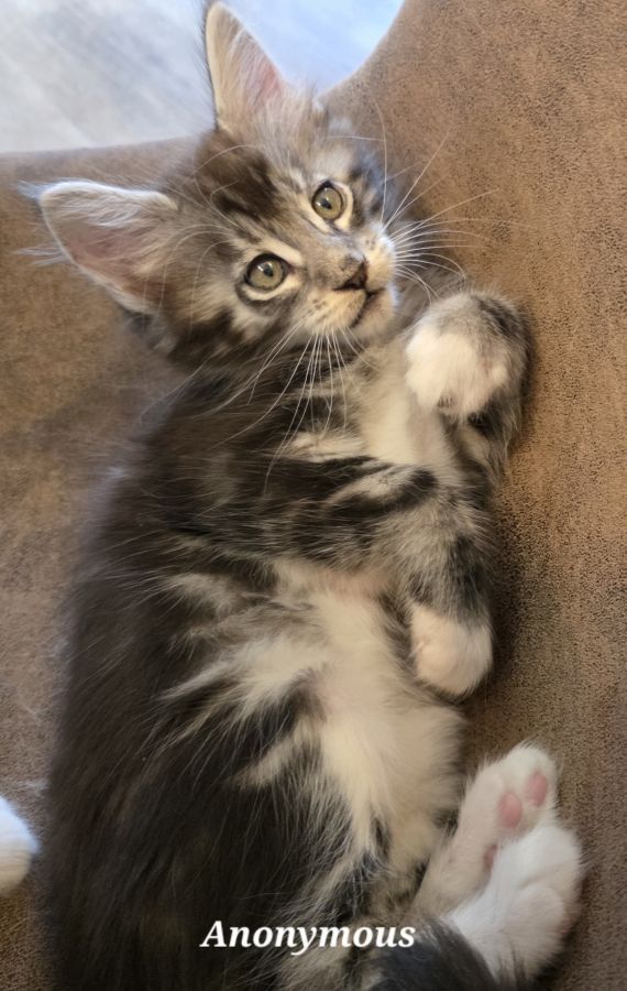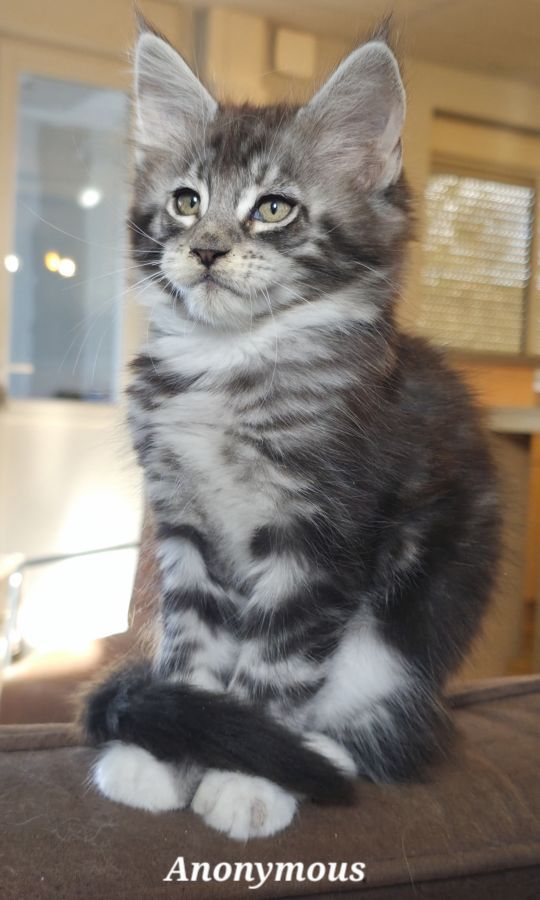 La chatterie du DoMain’ de Rebelle est heureuse de vous présenter sa magnifique portée de 5 chatons née le 3 février 2026, issue du mariage de Uria d’Osyris Coon’s (photo n°4) et Socrate des Sky’coon (photo n°5), Parents testés sains par ADN et échographies. Encore disponibles à la réservation : • 2 mâles Blue silver (colliers rouge et bleu) • 1 femelle Blue smoke (collier rose) Les chatons évoluent parfaitement, avec de très belles prises de poids. Ils sont manipulés quotidiennement, habitués aux bruits de la maison et grandissent auprès de leur maman, attentive et équilibrée. ⸻ 🩺 Ils partiront : ✔️ Identifiés par puce électronique ✔️ Vaccinés (primo et rappel) ✔️ Vermifugés régulièrement ✔️ Avec certificat vétérinaire de bonne santé ✔️ Inscrits au LOOF ✔️ Kit chaton Ils seront disponibles à partir de l’âge légal de 13 semaines, soit à partir du 5 mai 2026. ⸻ 🏡 Nos conditions : Nous recherchons des familles sérieuses et engagées. Un premier contact par message est apprécié afin d’échanger sur votre projet et l’environnement que vous pouvez offrir. Un contrat sera établi pour garantir la réservation et des photos vous seront adressées régulièrement jusqu’à l’arrivée de votre bébé coon. Proposés pour compagnie. Repro possible pour petite structure familiale uniquement. Photos