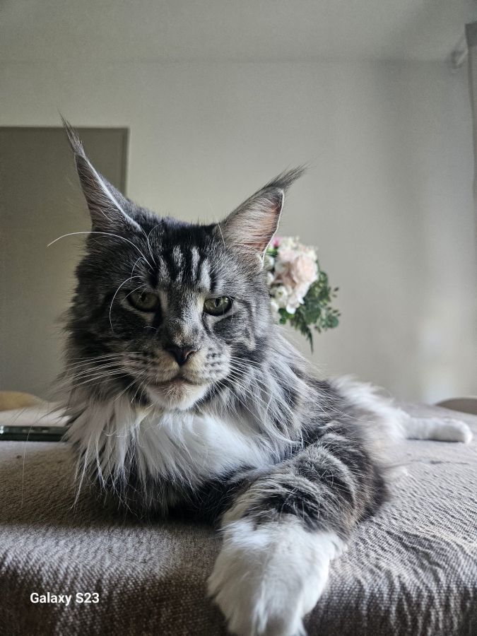 Le père est âgé de 6 ans blanc, loof. La mère est blanche et grise âgée de 4 ans maine coon à 95%.