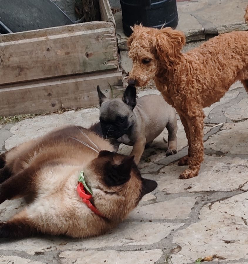 Les bébés grandissent au contact d'enfants, chat, chiens adultes , poules .