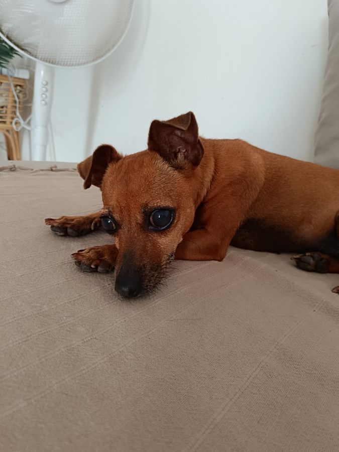 🪪 Je suis une petite croisée Pinscher née le 01 janvier 2018 et je pèse 5 kg. Je suis vermifugée, vaccinée, identifiée et stérilisée.