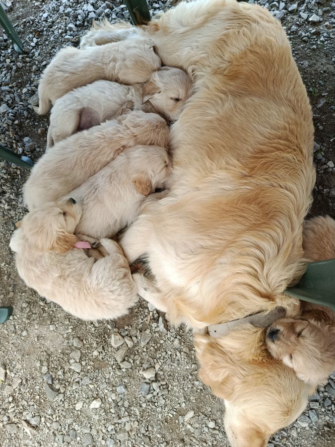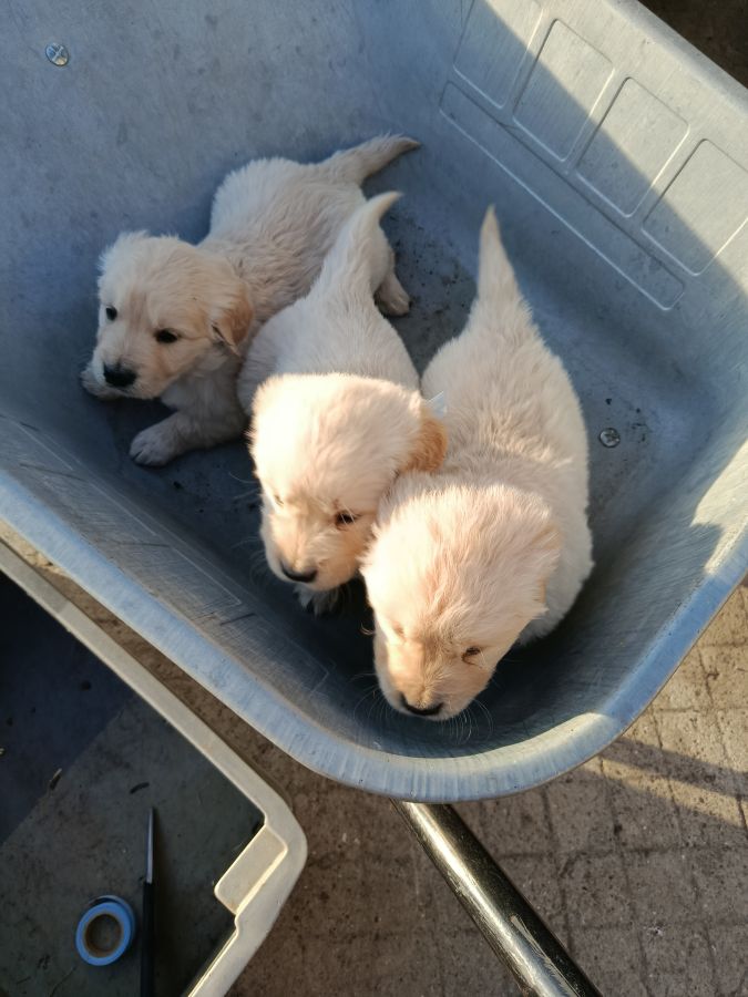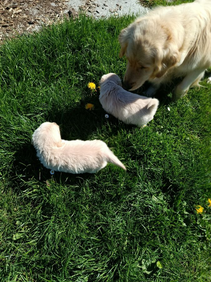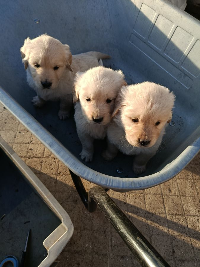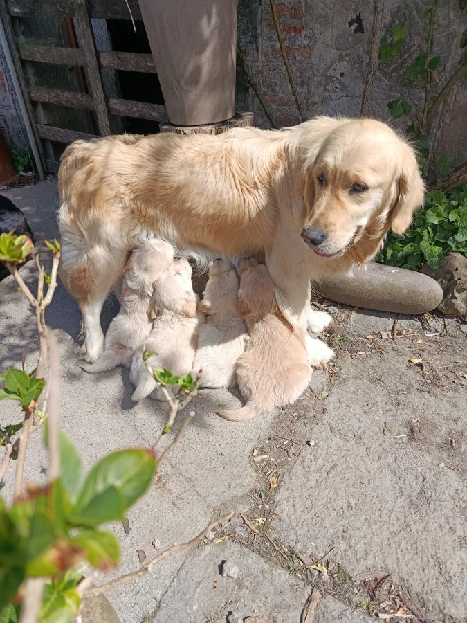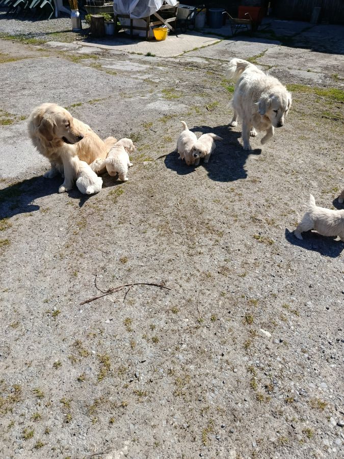 Chiots golden retriever a réserver. Disponible le 15 mai. Reste 3 mâles et 2 femelles. Ils seront identifiés (puce électronique) et primo vaccinés. Carnet de santé et certificat du vétérinaire.. parents pur golden. Élevés en famille.Visibles sur demande.vendu 950 € les mâles et 1050€ les femelles.