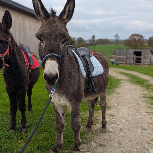 Kikou - 5 ans - âne castré - environ 1m20 - porteur Kikou est un âne très avenant qui aime le contact avec l'homme. Plutot joueur au pré, c'est le clown du troupeau. Encore un p...