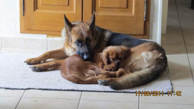 Elevage de caractère familial, mes chiens sont mes compagnons, je suis une passionnée des Bergers Allemands depuis 25 ans, je recherche le beau et le bon, avec du caractère, de la tendresse et capable de travailler, ils sont radiographiés indem de dysplasie,pour les bergers allemands. Mes chiens ne sont pas en prison, ils vivent avec nous en compagnie des Cavaliers King Charles (les 4 couleurs), ma 2ème passion , tous tatoués et vaccinés.