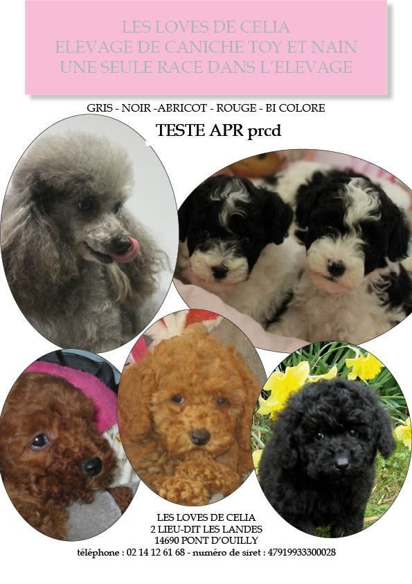 TOUS mes chiots caniches sont issus de parents testés APR prcd , indemnes de problèmes cardiaques ainsi que de problèmes de rotules.