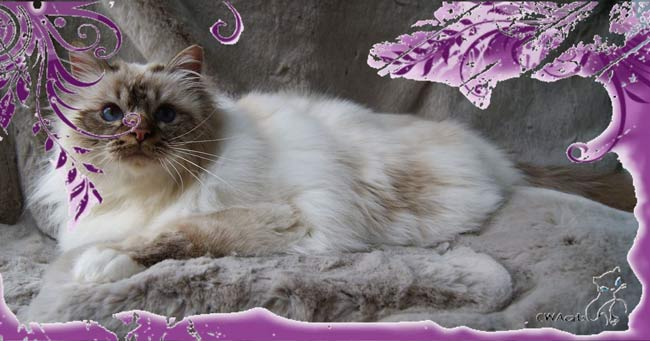 Notre chatterie cajole des chats Sacré de Birmanie dans une large palette de couleur, éd, crème, lilac, tortie, chocolat, seal en tabby et en point. Tous vivent en harmonie avec nos enfants, les chats selkirks rex et les chiens shih tzu. Venez visiter notre site web:www.cwacats.com et notre actualité sur notre page facebook.