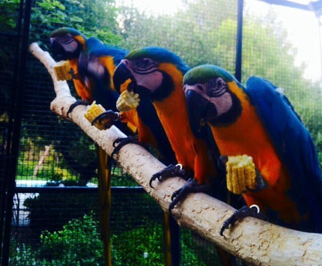 J’élève chaque année de jeunes Ara, Ararauna, Chloropteres.