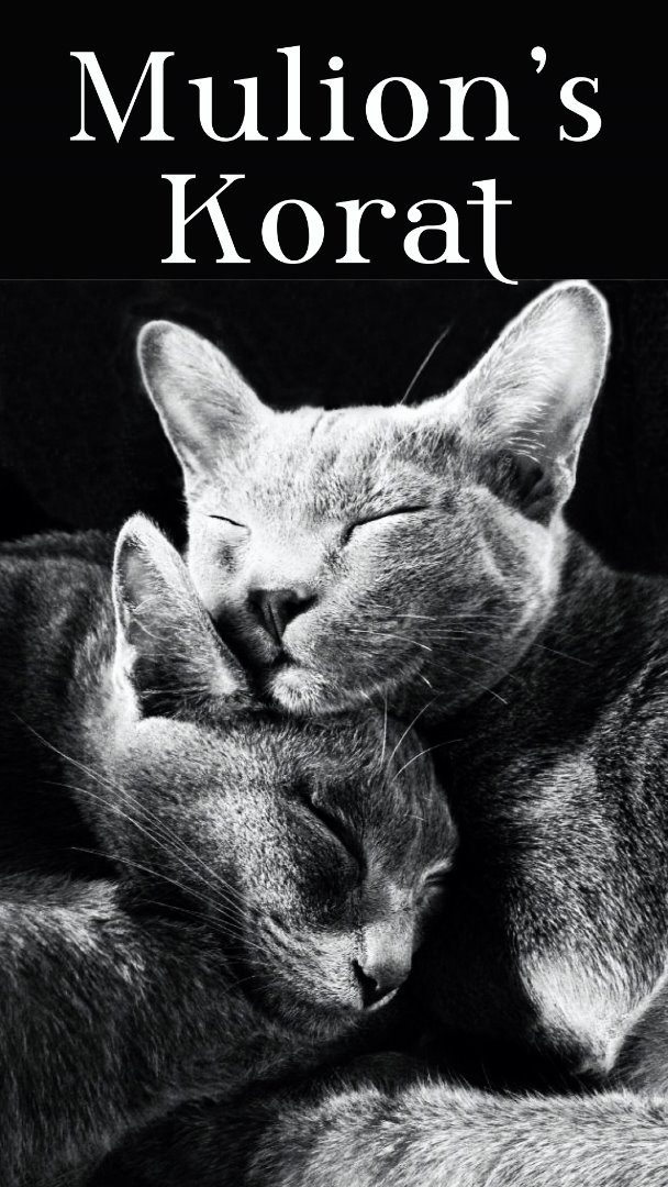 Mulion's Korat est un élevage familial de chat de race Korat. Nous sommes membre de l'association du Jardin des Korats et fidèles à l'élevage mythique Passaya. Notre couple de chats, Astrée et Céladon, nous ont été offert en cadeau de mariage comme le veut la tradition thaïlandaise. C'est une première en France! Nous sommes tombés sous le charme des korats pour sa robe noire diluée, ses yeux verts émeraude, sa forme de tête en cœur et son tempérament bien trempé. Nous vivons également en compagnie d'un perroquet éclectus, de deux chiens loup et d'une lapine argentée.