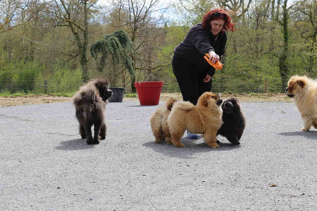 Nos chiots naissent tous dans notre séjour, après quelques jours sous surveillance et phase d' imprégnation ils passent en nurcerie, entre 4 et 5 semaines ils sortent librement dans le jardin de 2 000 m2 avec maman et d' autres chiens. Tous nos chiots sont inscrits au LOF . Nos géniteurs sont radiographiés des hanches, radio lue officiellement. Nous sommes adhérent au club Français du Chow Chow .