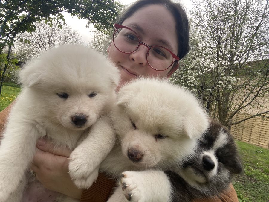 Nous élevons nos chiots dans un cadre familial, en campagne, et nous sommes attentifs à sa socialisation les 3 premiers mois de sa vie. Nos chiots peuvent partir à 8 semaines, idéalement autour de 10 à 12 semaines.