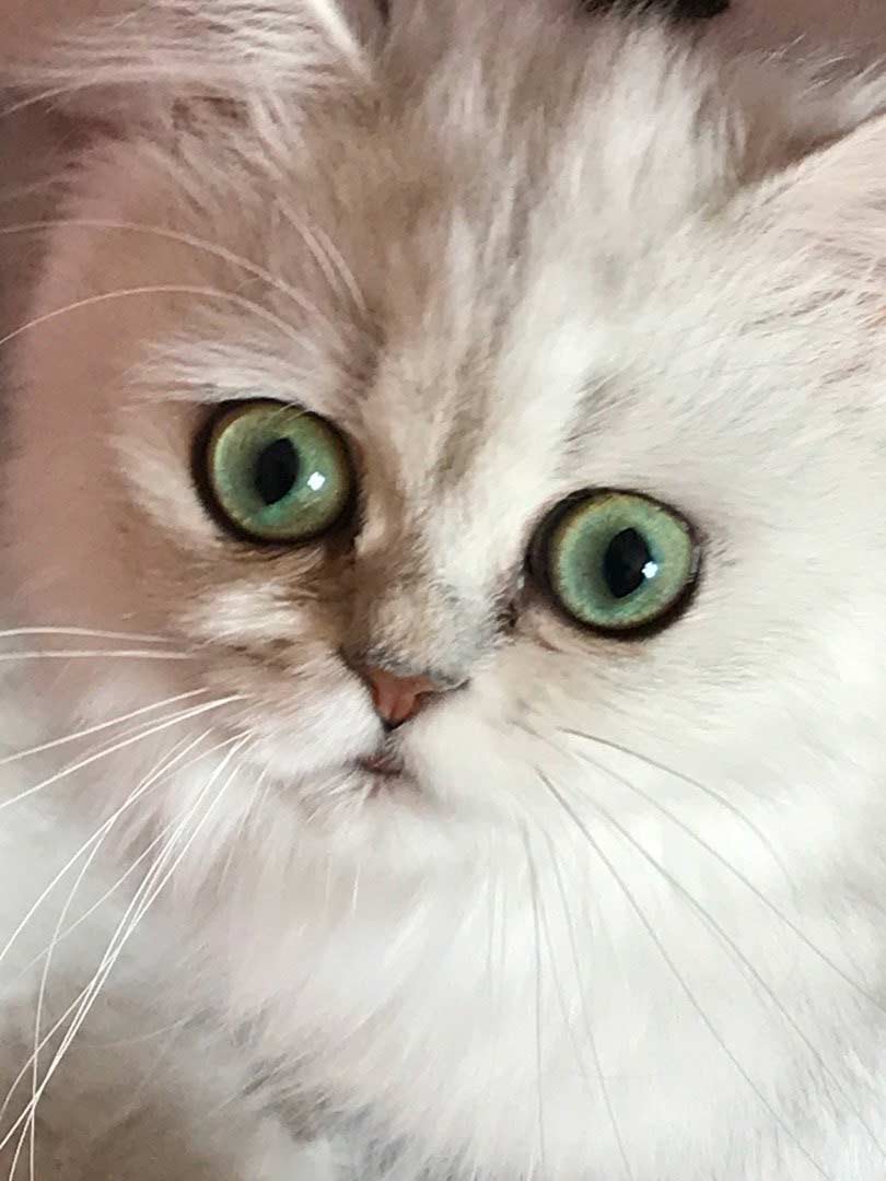 Elevage familial de chat persan chinchilla d’exception aux magnifiques yeux verts émeraudes maquillés du noir a l’âge adultes .
