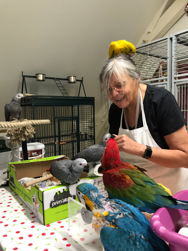 Ensuite... Une femme passionnée, habitée par l'amour des perroquets, fascinée par leur intelligence, particulièrement leur intelligence du cœur.
