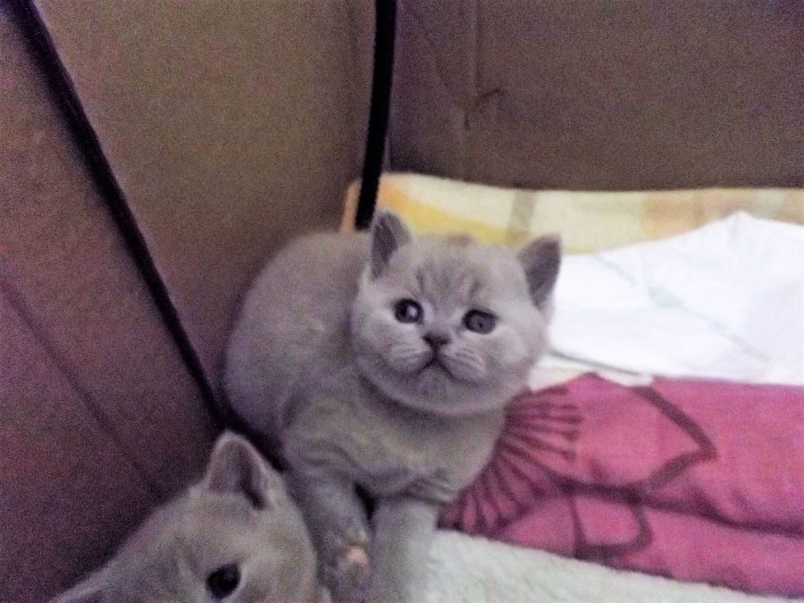 Aujourd’hui,  mon nouveau reproducteur, Willy , beau British Bleu venant de Lettonie honore  mes 2 femelles entières :  Reinette bleu/crème, toute ronde, toute douce, avec une tête et des yeux ambre magnifiques et la toute dernière nommée Tasmine à la robe fawn arlequin (voir photo)