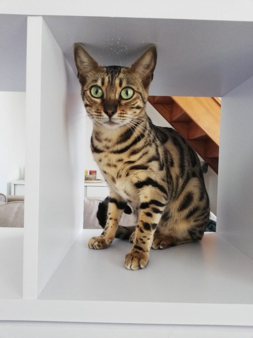 J'ai fait l'acquisition de ma première chatte Bengal de couleur Brown Tabby rosetted en juillet 2019 chez une éleveuse que j'apprécie énormément pour son accueil, ses conseils et son aide à tous moments.