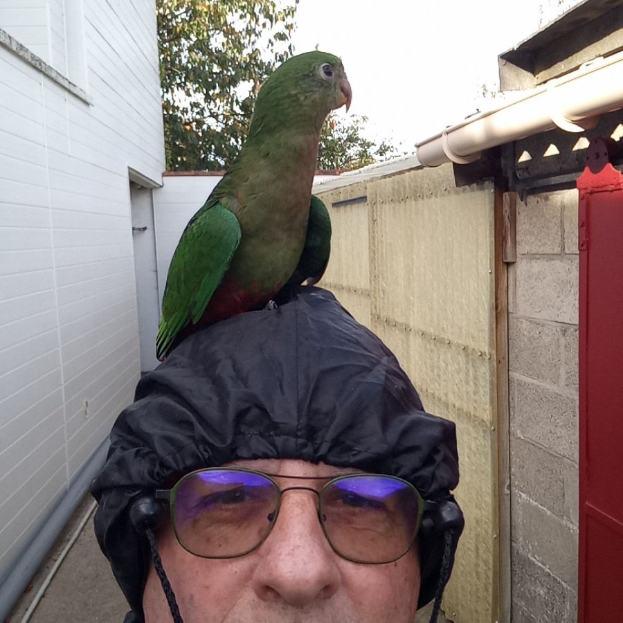 J'ai depuis une année une autre passion, c'est d'élever les oiseaux à la main ( Royale, Pyrrhura, ,Calopsitte et Ondulée) et que j'apprivoise pour pouvoir les promener sur la tête ou sur les épaules.